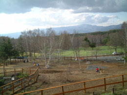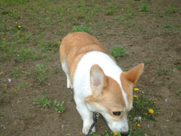 山の分譲地ではつづじも咲いてるよ!! 「まて」の練習中・・・