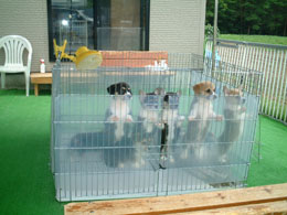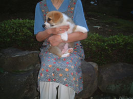 でか姉帰ってきて、小太郎と散歩にいくとき、花は母がだっこしてはじめて庭にでた。初めてのお外だ。