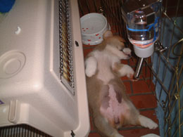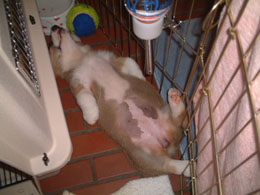 小太郎は台所で氷とりんごをもらっておやすみ〜〜!!