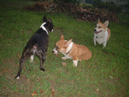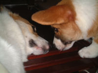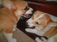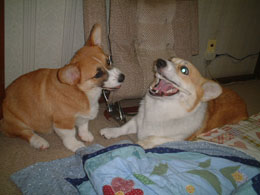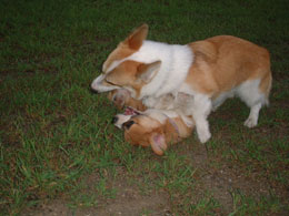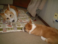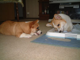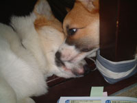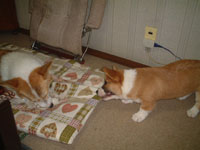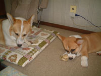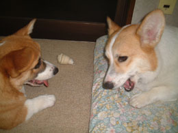 2匹居間では、バトルしたり、でか姉とひっぱりっこしたり遊んだあとは、棒をカジカジしてやっとおとなしくなりました。(笑)