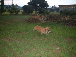 小太郎のうんちも夕方カッパをきせ、強制連行しつつ散歩へいったら、すぐしてくれました!!は〜〜よかった!!