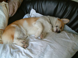 昨日の夜はすこ〜〜し元気がなかったけど、今朝はごはんもたいらげて、元気いっぱいだったそうだ。