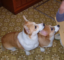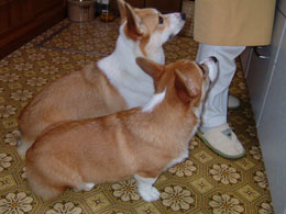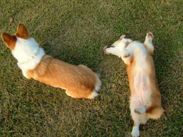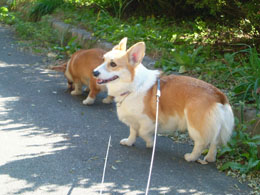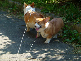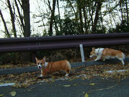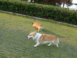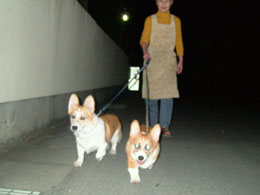 父が帰ってくると2匹でお迎えに走っていく。ちょうど散歩から帰ってきたくらいの時間なのだ。