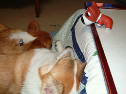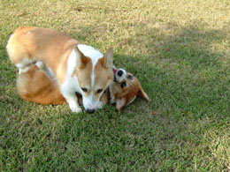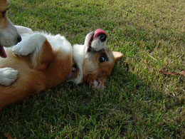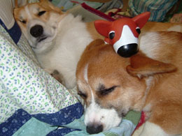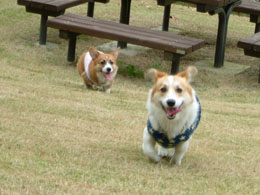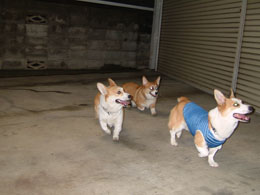 その2匹の一番の楽しみは、寝る前の梨だ。ほんと〜〜においしいみたいで、最後の1カケラになって「ハウス」というと、猛ダッシュで走ってハウスの中へかけこんでいくのだ。その姿がまたかわいいね〜〜!!