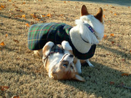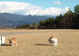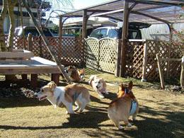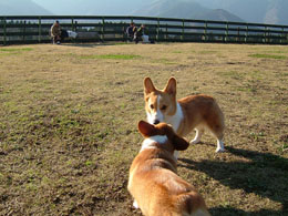 そのあと、体育館の裏へよったら、お友達ワンこにもあって、2匹楽しく遊んできました。