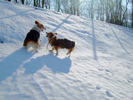 「まって〜〜!!」 人間のほうが転びそうだよ(爆)