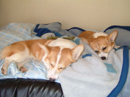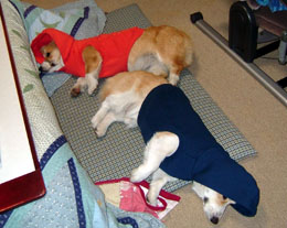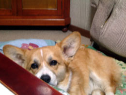 小太郎はしばらくすると、「ぼくもういい〜」といって、人間の横にゴロンしに来ますが、花がだまっていません(冷汗;)