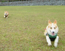 シャンプーもするつもりだったので、泥んこ覚悟で、 カッパ着せドックランに遊びにいったのですが・・