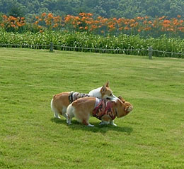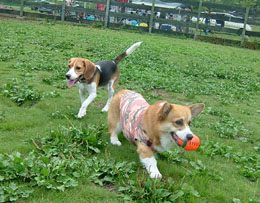 花ちゃんは、ビーグルくんとかけっこしていい勝負だったよ!!