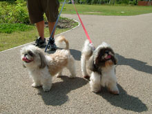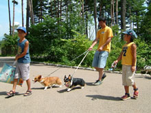 ワンちゃんたちは、リードつけての散歩でしたが、