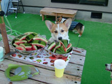 少しだけ赤いところの残ったスイカもらってたね!! |