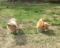 小太郎(左)は「もう遊びつかれたよ〜〜」