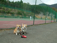 ホテルにもどり、、「ワンワンお散歩コース」に行き、テニスコートで食べました(爆)