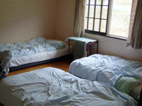洋室にはベットが3個。和室は布団をひきます。