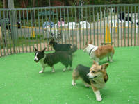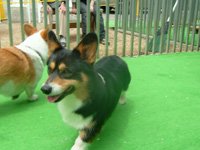 ドックランでは、1匹のコーギーが遊んでいました。