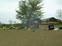 飼い主たちはお弁当広げはじめます