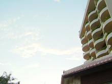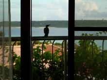 お世話になるホテル。お部屋のベランダには鳥がとまってたり。