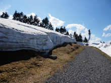 かなり山の上へあがってきたので、まだ雪が残ってましたよ。
